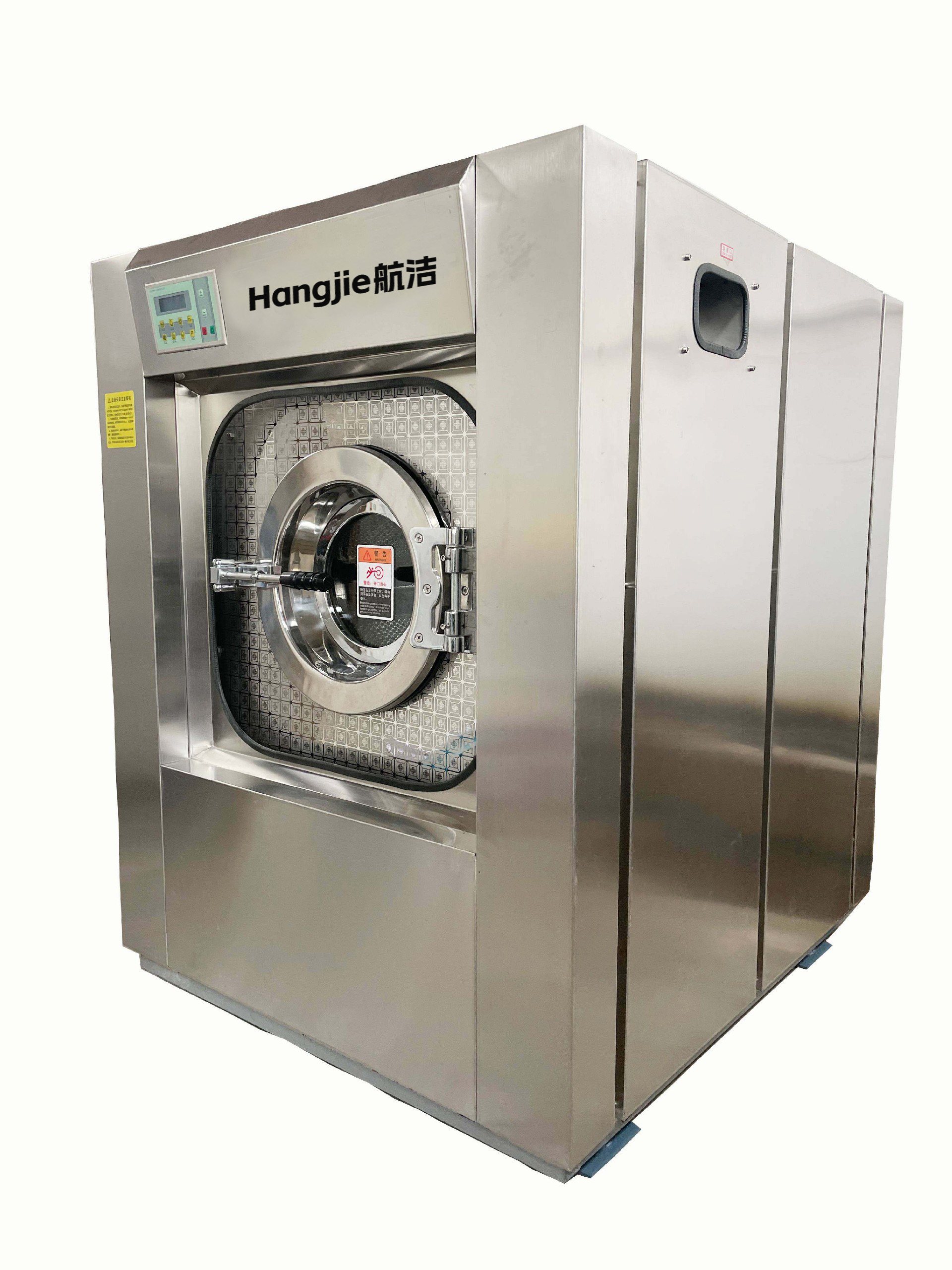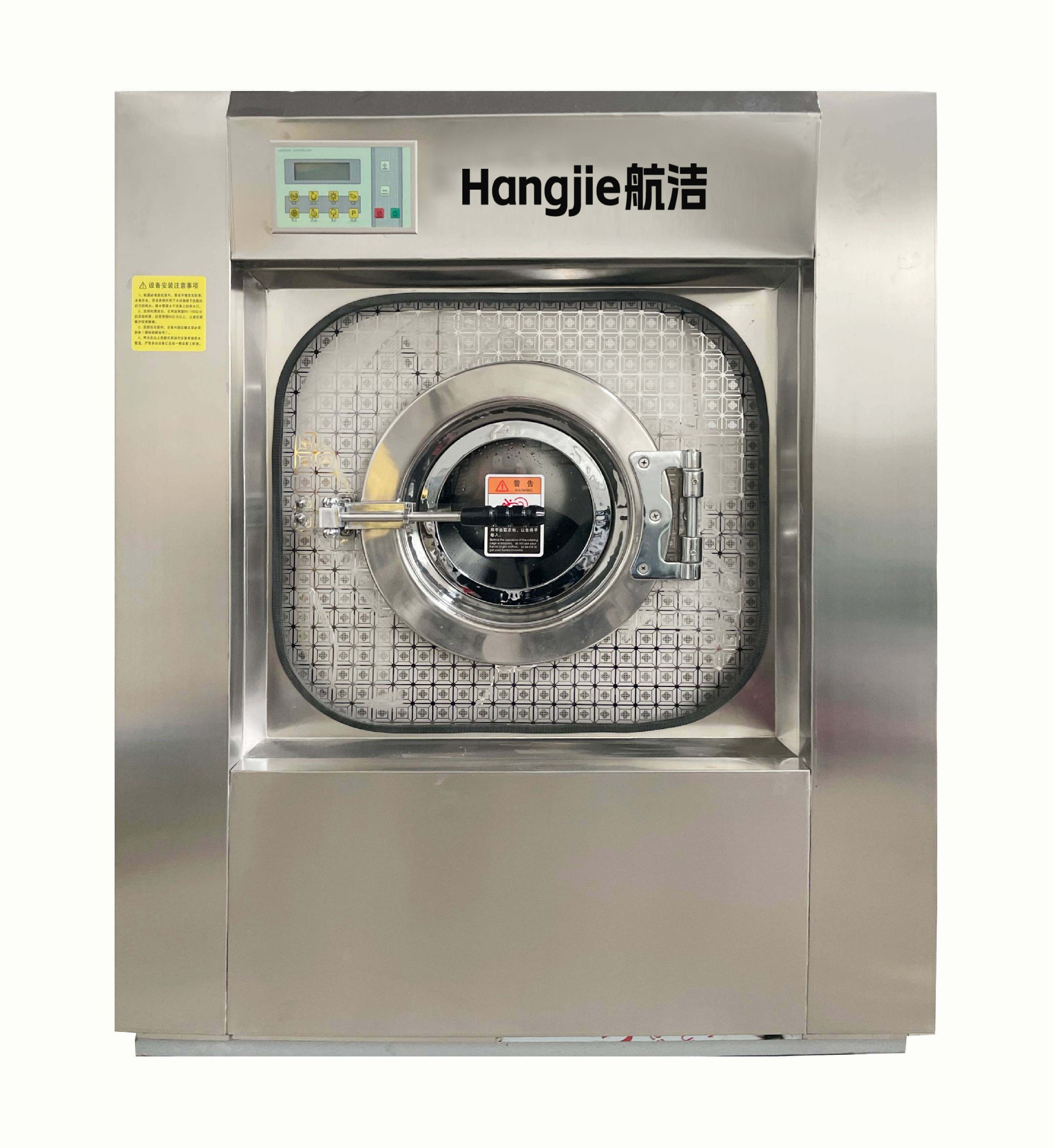 8、變頻調速全懸浮式全自動洗滌脫水機,國內名優品牌,用于各種織物的水洗和脫干專用軸承及油封;大門口設計,便于裝卸物料;氣動控制閥;超震保護設計;應有緊急制動開關。